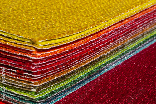 Catalog of multi colored cloth. Sample fabric. Industry background.