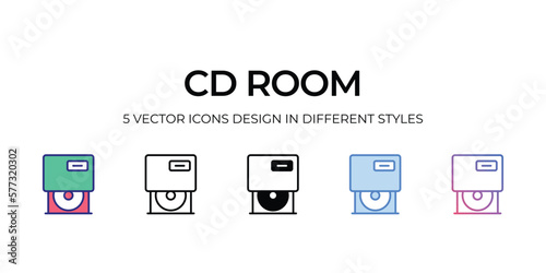 cd room Icon Design in Five style with Editable Stroke. Line, Solid, Flat Line, Duo Tone Color, and Color Gradient Line. Suitable for Web Page, Mobile App, UI, UX and GUI design.