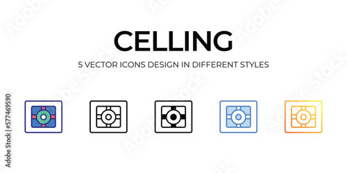 celling Icon Design in Five style with Editable Stroke. Line, Solid, Flat Line, Duo Tone Color, and Color Gradient Line. Suitable for Web Page, Mobile App, UI, UX and GUI design.