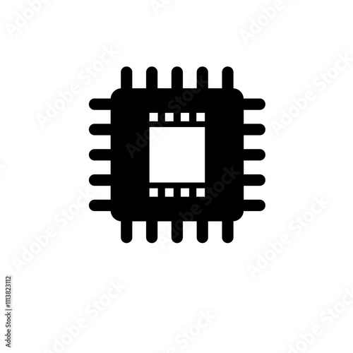 Central Computer Processors, CPU Microchip Solid Flat Vector Icon Isolated on White Background.