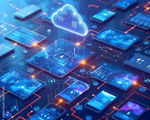 Central Digital Cloud Connecting Multiple Devices for Cloud Computing Concept