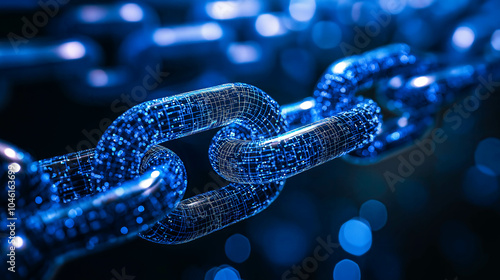 Chain security system technology. The concept of interconnected, decentralized networks providing secure, tamper-proof protection for data and digital assets. Generative AI.