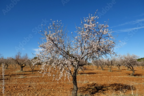 Champ d'amandiers en fleur.