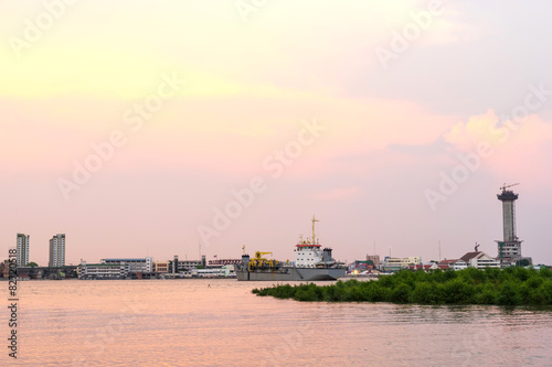 Chao Phraya river outflow under evening sky