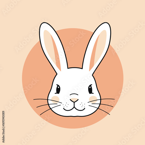 Charming White Rabbit Portrait on Peach Background