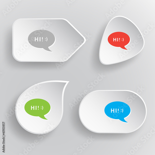 Chat symbol. White flat vector buttons on gray background.