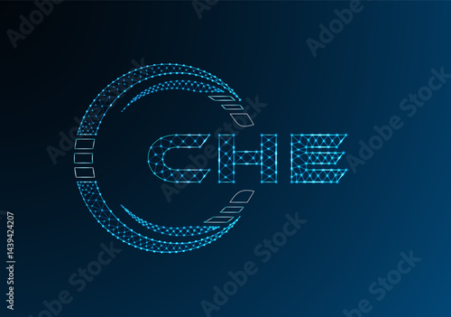 CHE low poly letter logo vector design. CHE lower poly logo design.