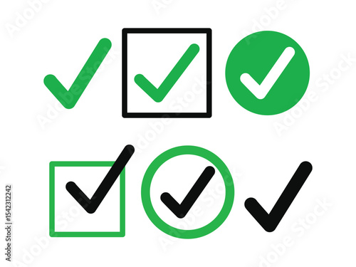 Check box icon with correct, accept checkmark icons tick box checked. Green Check mark icon vector set. Green tick check mark icon vector. Set of Green check mark isolated vector icons.