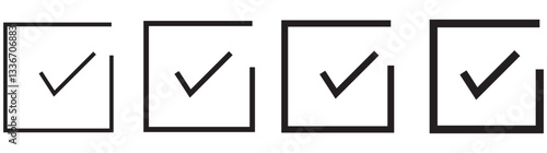 check box icon with correct with different line width. approved symbol. accept checkmark icons green tick box, check list square frame sign.