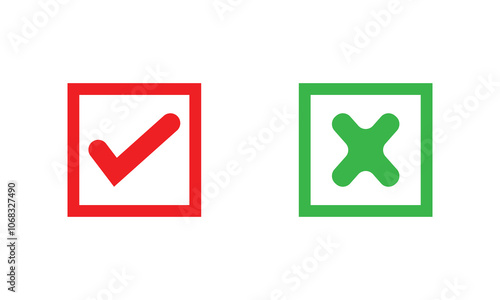Check box tick mark icon set button correct right wrong buttons or yes or no checkmark red cross green tick vector illustration.