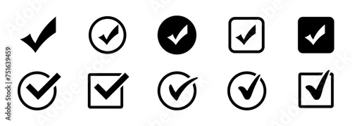 Check marks collection. Check marks different shape. Vector illustration