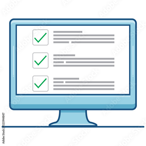Checkboxes on computer screen. Checkboxes and green checkmarks