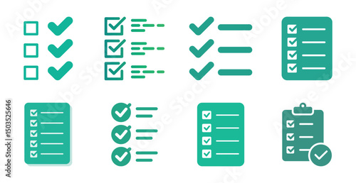 Checklist icons set green checkmarks task management to do list