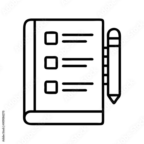 Checklist notepad vector icon for task management and organization with pencil for notes taking