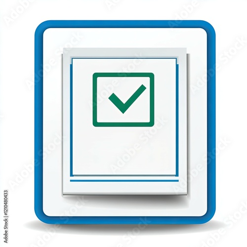 Checkmark symbol in a blue-bordered square, emphasizing completion or approval in a clean and modern design.