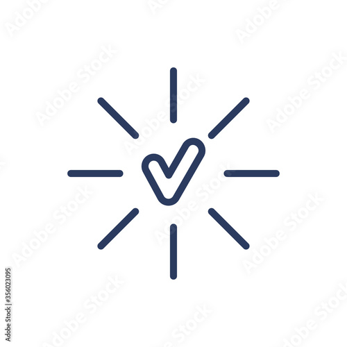 Checkmark with rays thin line icon. Tick, success, approval isolated outline sign. Check marks and business concept. Vector illustration symbol element for web design and apps