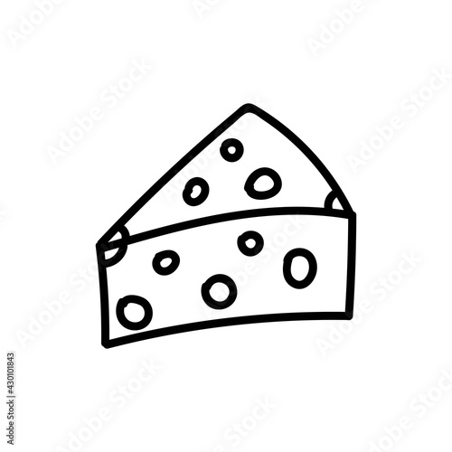 Cheese with holes. Hand drawn doodle vector illustration isolated on whithe background. Simple drawings with black color