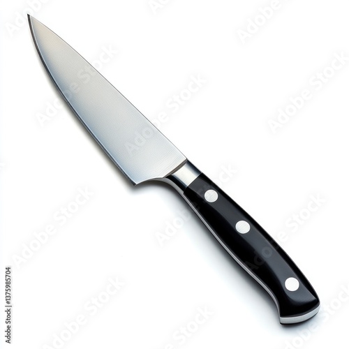Chef's Knife with Sharp Silver Blade and Black Handle on White