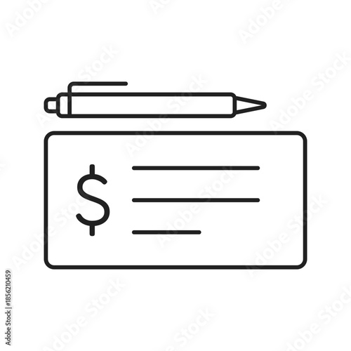 Cheque document and pen line art outline icon vector