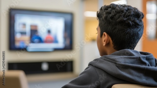 Child Enjoys Educational Show on Large TV in Modern Learning Space