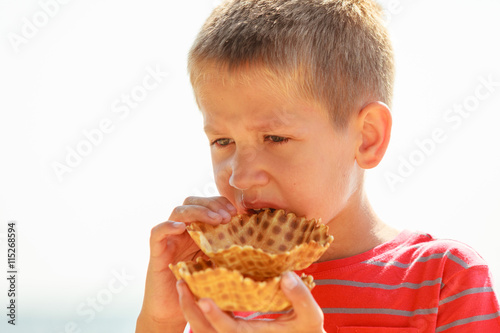 Child with sweet food outdoor.