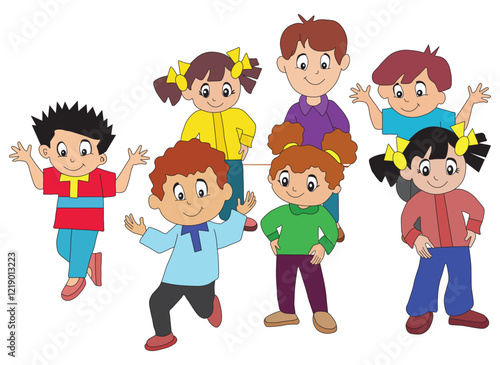 children in the park. Happy Group of Kids Boys and Girls Enjoying Fun Moments Together. Vector Illustration.