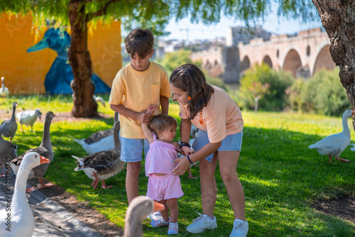 Children Interacting With Ducks Outdoors