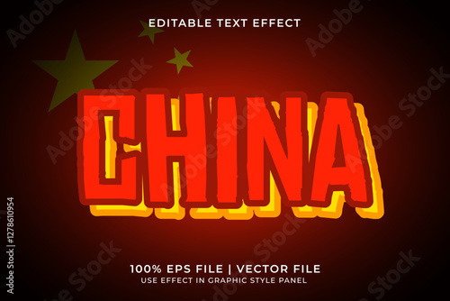 China 3D Editable Vector Text Effect. Red and Yellow Text Template