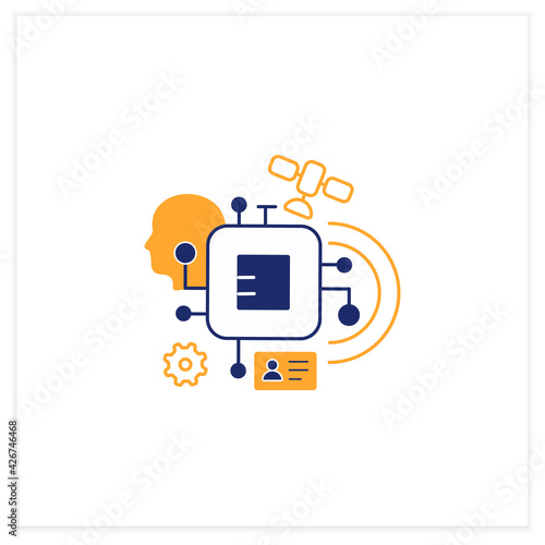 Chipization flat icon. Embedded in persons body. Modern technology. Small information disk.Digital transformation concept.Vector illustration