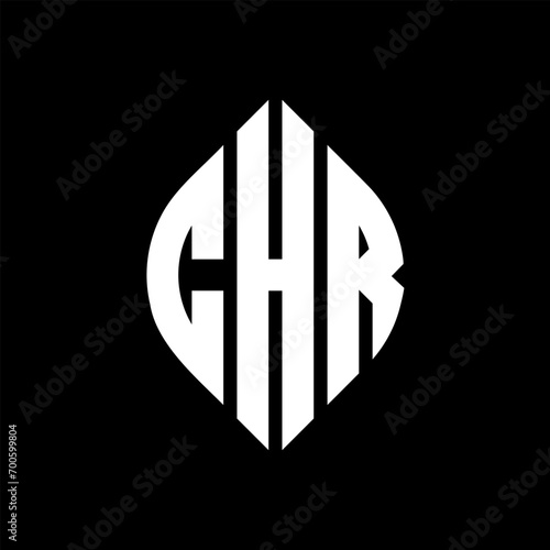 CHR circle letter logo design with circle and ellipse shape. CHR ellipse letters with typographic style. The three initials form a circle logo. CHR Circle Emblem Abstract Monogram Letter Mark Vector.