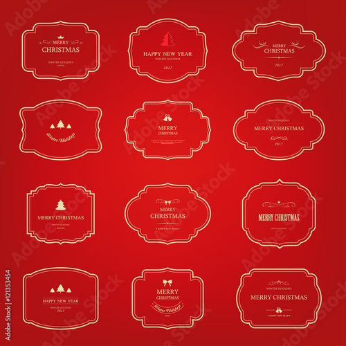 Christmas label and elements vintage design. Vector frame label.