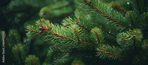 Christmas tree branches on a natural background.