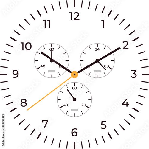 Chronograph round face with second arrow. Precise timer