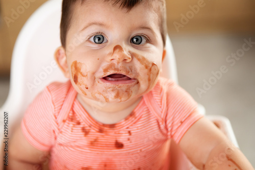 Chubby baby with messy chocolate face