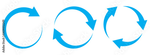 circle arrow icon set. Blue circular arrow icon, refresh, reload arrow icon symbol sign. Blue Reload vector icon set. repeat vector. restart or reset sign. Repeat cycle symbol. Blue rotation arrow.