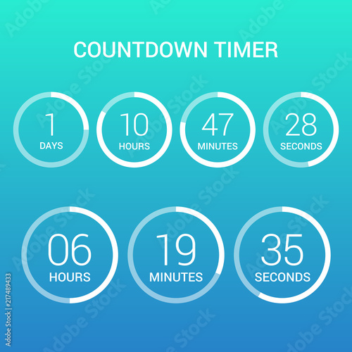 Circle countdown clock counter timer on gradient. Vector time remaining count down round indicator scoreboard of day, hour, minutes and seconds. Can be used for web page upcoming event template design
