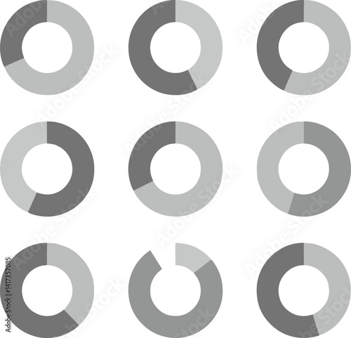 Circle divided diagram set. Graph icon pie shape section chart. Segment circle round vector divide infographic vector illustration.