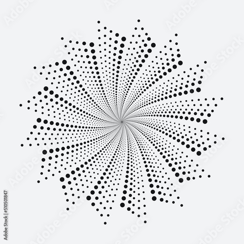 Circle halftone spiral backdrop. Dotted abstract concentric circle. spiral, swirl, twirl element. Circular and radial dots helix. Design element for multipurpose use.