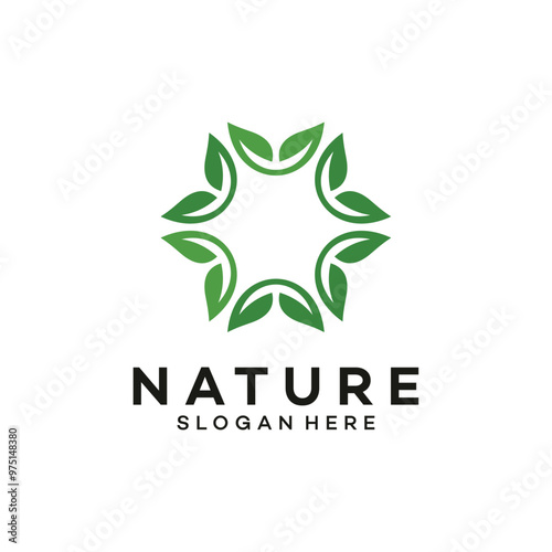 circle leaf logo design vector template.