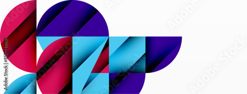 Circle, square and flower petal geometric background. Round shapes composition for wallpaper, banner, background or landing