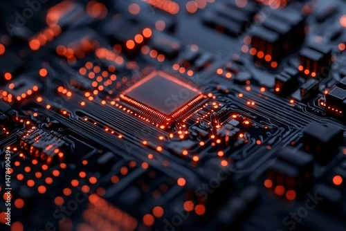 Circuit board close-up, glowing components (1)