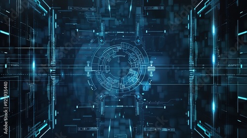Circuit Board Technology Background. Blue Abstract Data Transfer Design Illustration.