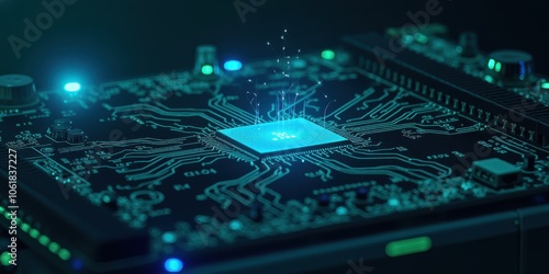Circuit Board with Flowing Data and Sparkling Effects