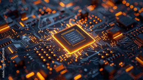 Circuit Board with Glowing Chip