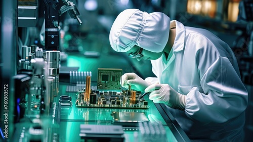 circuit component electronics factory illustration board testing, quality control, automation robotics circuit component electronics factory
