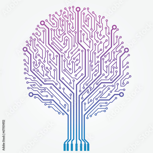 Circuit technology tree on white background. Computer engineering hardware system. Vector