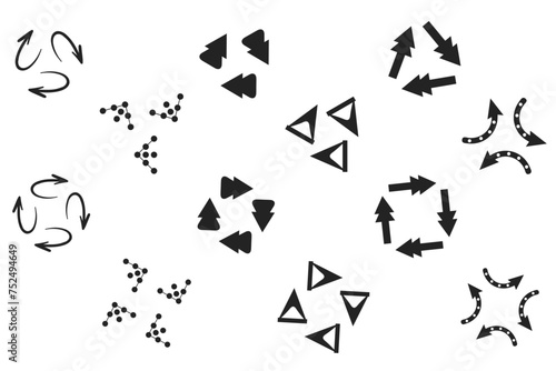 Circular arrows icon set isolated collection. Round arrows, circular pointing sign. Round step loop, sync loading arrow symbol. Rotate infographic element