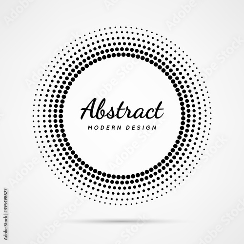 Circular dot frame. Circle border with effect halftone. Modern faded ring. Semitone shape round. Point sphere boarder. Dotted geometric pattern. Graphic small dots element for design prints. Vector