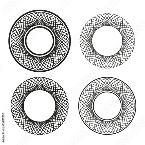 Circular spirograph patterns. Black lines. Geometric vector shapes. Abstract design.