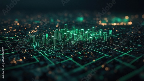 City of the Future: A captivating digital rendering of a futuristic city, illuminated with vibrant neon lights, hinting at advanced technology and urban innovation.